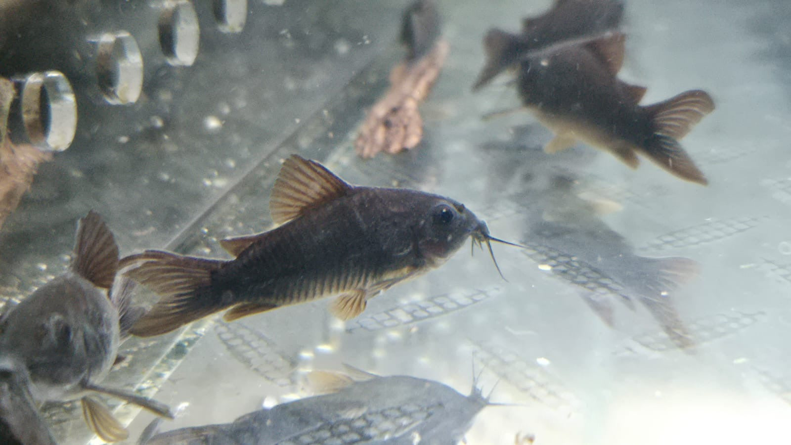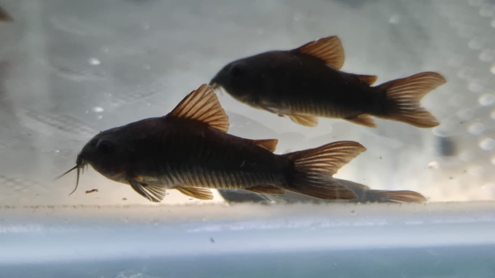Black venezuelan corydoras are a popular, peaceful bottom-dwelling catfish known for it’s striking deep black body with maroon/ orange accents.